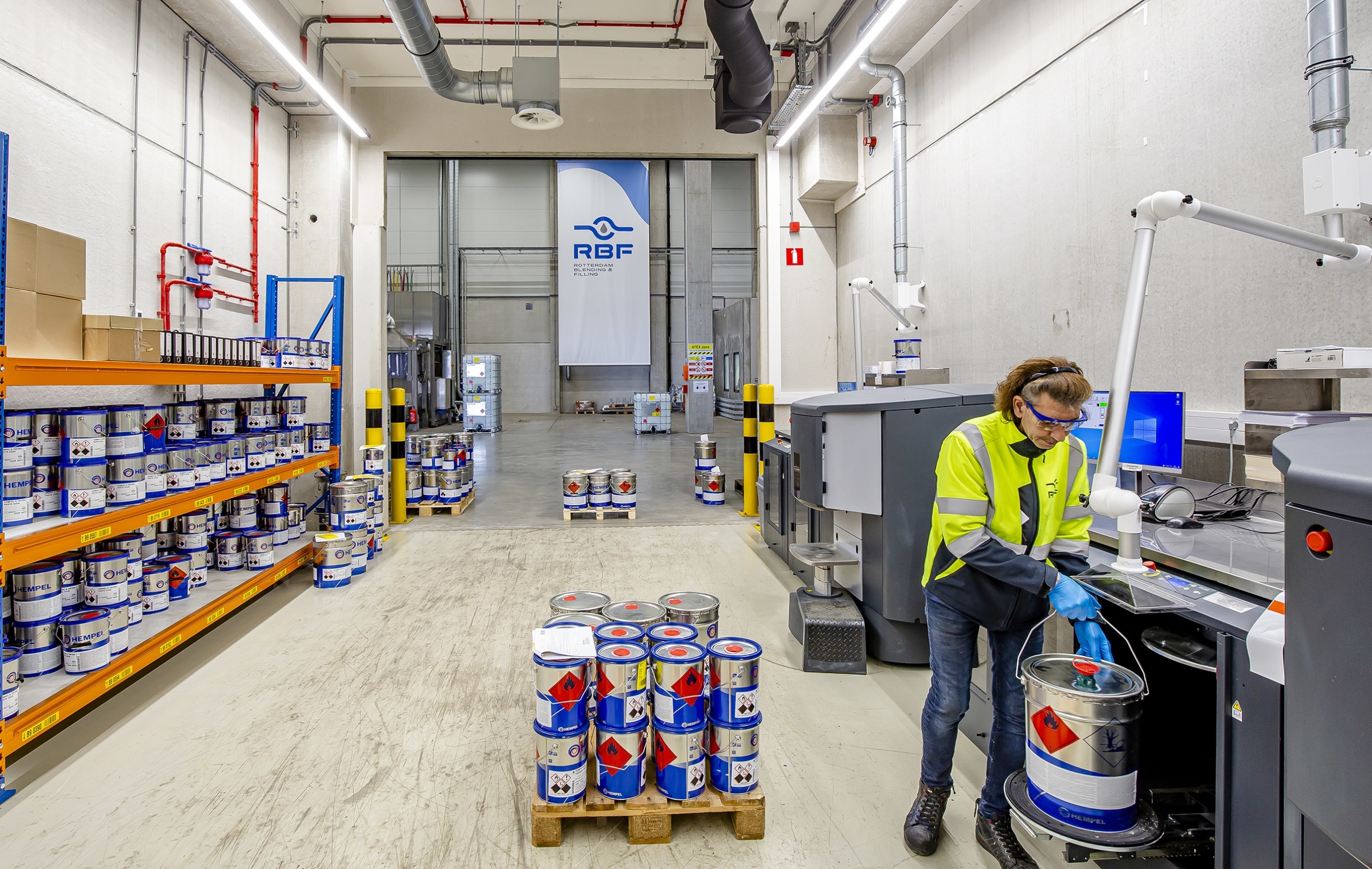 At Rotterdam Blending & Filling, no less than 1,000 m2 of storage and distribution centre is equipped for, among other things, filling and repackaging liquid (hazardous) chemicals. RBF specializes in filling and repackaging products into various types of packaging, such as IBCs or drums or cans. After this, we can store the goods for you.